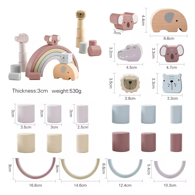 The wooden stacking block toys with different colours can teach the baby to recognize various colours and use these blocks to build a favourite shape, it will be a preschool or everyday toy.